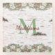 Winter Woodland aspen White Crean Roses and Pinecones Monogram Name Glass Coaster