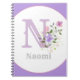 Design features the recipient's Monogram & Name with Flowers either side in a water colour pastel style. Initial is the letter N.