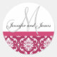 Monogram & Names Damask Hot PInk Wedding Sticker