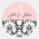 Monogram Names Date Damask Pink Wedding Sticker