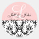 Monogram Names Date Damask Pink Wedding Sticker