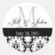 Monogram Names Date Damask Wedding Grey Black Classic Round Sticker