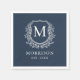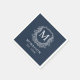 Monogram Navy Blue Crest Botanical Wedding Napkin