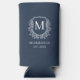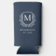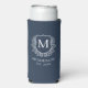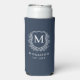 Monogram Navy Blue Crest Botanical Wedding Seltzer Can Cooler