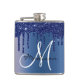 Monogram Navy Blue Dripping Glitter Drips Hip Flask