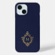Monogram Navy Blue Elegant Faux Gold Crest Initial Case-Mate iPhone Case