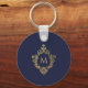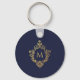 Monogram Navy Blue Elegant Faux Gold Crest Initial Key Ring