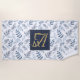 Monogram Navy Blue Gold Botanical Leaves Ferns Beach Towel