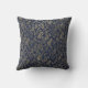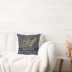 Monogram Navy Blue Gold Leaf Newlyweds Wedding Cushion