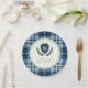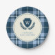 Monogram Navy Blue Plaid Baby Boy Shower Paper Plate