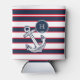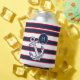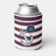 Monogram Navy Blue Red White Nautical Stripes Can Cooler