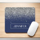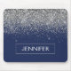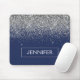 Silver and Navy Blue Faux Glitter Sparkle Elegant and Modern Chic Trendy Luxury Monogrammed Mouse Pad. These monogram - add your own name customised mousepad can be updated with your name.