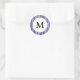 Monogram Navy Blue Stripe Preppy Classic Round Sticker