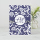 Monogram Navy Damask Swirls Wedding Invitation