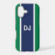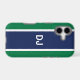 Now your phone can look really stylish with this tough case decorated with a bold navy stripe on a green background and your custom initials.