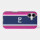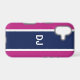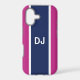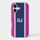 Now your phone can look really stylish with this tough case decorated with a bold navy stripe on a pink background and your custom initials.