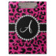Monogram neon hot pink glitter cheetah pattern clipboard