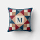 This monogrammed Ohio Star quilt block pattern throw pillow in navy blue, red, cream, slate blue, and tan has assorted patterns on some of the coloured pieces of the digital quilt block. The centre square is ivory with red and navy text that says, "HOME SWEET HOME" on one side with your initial monogram in navy on the other side. This 16" square throw pillow will add a pop of colour and warmth to your family room, front porch bench, or get the floor size for next to your fireplace. If you would like this design on a different product type or in a different colour combination, please email your specifics to niteowlstudio@gmail.com.