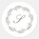 Monogram Olive Green Wreath Classic Script Wedding Round Sticker