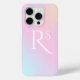 Monogram Ombre Holographic Pink Girly Personalised iPhone 15 Pro Phone Case features a pink and blue holographic background with your personalised monogram in the centre. Personalise by editing the text in the text boxes provided. Designed by ©Evco Studio www.zazzle.com/store/evcostudio