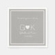 An elegant and chic design on a grey paper napkin, for your wedding reception party, personalised with your initials (a nice monogram with the image of a heart) and custom text (Thanks for taking part in our wedding day)...