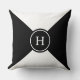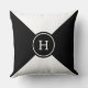 Modern monogram on abstract black and white geometric shapes Pillow. H letter can be personalised.