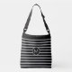 Modern monogram on black and silver grey colour striped Crossbody Bag. M letter can be personalised.