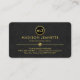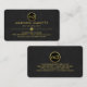 At the top is a gold circle logo where you can place your name initials-monogram (You can use different sizes of fonts or styles to your liking). Underneath this is your prestigious name and the job title which you can change. At the base of the card are your contact details.