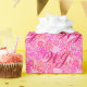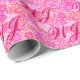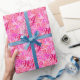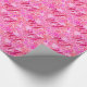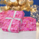 Wrapping paper in a customisable, two letter monogram - deep fuchsia pink against a floral background in shades of pastel pink