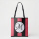 MONOGRAM on WHITE w/WATERMELON & BLACK Stripes Tote Bag