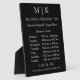 Modern Minimalist Business Hours Tabletop Sign. Black & White or choose your custom colours. Perfect for retail companies, small business shops, salons, spas, bakeries, cafes, restaurants, bars and more. Easy to personalise with your monogram initials, business name and information, photos, slogan or even add your logo or personal brand design.
