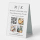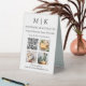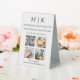 Modern Minimalist Business Table Tent Sign with 3 Photos. Black & White or choose your custom colours. Add your website or social media web address to the QR Scan Code. Allow customers to use the scan to access information on your items such as products or menu items. Perfect for retail companies, small business shops, mall kiosks, trade show and event booths, hospitality, salons, spas, bakeries, cafes, restaurants, bars and more. Easy to personalise with your monogram initials, business name and information, photos, slogan or even add your logo or personal brand design.
