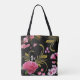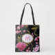 Monogram or Custom Text Pink Flowers Tote Bag