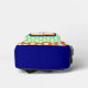 Monogram in black typography against white background with black oval trim (insert one or two initials). Have a Great Day in black typography against white background inside double blue and orange squares. Smaller white polka dots against green background on front. Pretty bright orange background with geometric white polka dots pattern. Solid navy blue sides and bottom. Mint green on top.. Original Design © TamiraZDesigns.