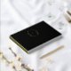 Monogram oval leaves crest hand drawn gold foil on black wedding guest book. Elegant foil gold and black book for your guests to manually write their good wishes and hopes to create a gift for the happy couple to cherish forever. Other matching items are available. Features original monogram hand drawn oval leaves art and design by Sarah Trett for www.mylittleedenweddings.com and www.mylittleeden.com on Zazzle.
