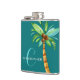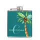 Monogram Own Name Elegant Teal Palm Groomsmen Hip Flask