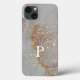 Custom Monogram P Elegant Grey Marble Rose Gold Glitter iPhone 13 Case.