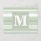 Monogram pale green stripes postcard