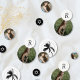 This photo confetti is perfect for a Bat Mitzvah candy bar, dessert table, candle table, and more. The design features a black and white palm tree, a monogram letter, a Star of David, and three photos of your Bat Mitzvah girl. Enter the Zazzle Design Tool to adjust the photo placement.