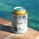 Monogram Party Dusty Blue Watercolor Flower Silver Can Cooler