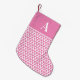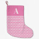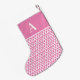Personalised monogram, pink Christmas stocking design. It has a Scandinavian inspired pattern and the initial "A" in white with a hot pink background. It is perfect for putting ready for Santa on Christmas Eve. Simply add your initial in the personalise this text box (to make it easier for Santa!) The colour can also be changed if needed, by simply using the editing tool. If you need help with personalisation, or for a custom design contact me via zazzle chat or email: ursuladawnmoon@gmail.com