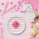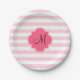 Monogram Pastel Pink Stripes Patten Paper Plate