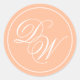 Monogram Peach 2 Initials Elegant White Script Classic Round Sticker