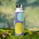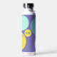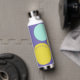 Personalised water bottle with initials and the owner's name, designed with circles in a fresh colour palette including aqua, yellow-green and purple. Easy to customise with its templates! Matching articles in my shop.