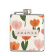 Monogram Personalised Cute Spring Tulip Pattern Hip Flask