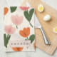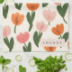 Monogram Personalised Cute Spring Tulip Pattern Tea Towel