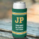 Can coolers are great to have, whether you’re relaxing at home, spending time outdoors, or hosting a party! This sport jersey style design features retro block lettering and matching stripes. Personalise the template with the recipient's monogram initials, and your own custom text. Ideal for motivational phrases, cool sayings, funny quotes, sports team titles, party celebrations or simply a person's name. The design is repeated on both sides, with further customisation at the base. You can also customise the background colour by using the design editor tool. Perfect for all ages, from kids and teens to family and friends! Printed colours: yellow gold, green and white.