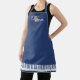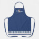 A stylish kitchen apron in dark blue, with a blue and white piano keyboard just above the hem. Personalise with the recipient's initial, in light orange, with their name in white script typography. The monogrammed apron makes a fun music themed gift, ideal for piano players, music teachers and fellow musicians.
