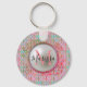 Shimmery diamond harlequin pattern of pinks and greens on a pink backdrop for contrast then a shiny silver sphere with green and pink flourish where you can personalise it with a letter and name to make it uniquely your own. Girly elegant vibes.