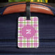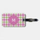 Monogram Pink and Green Tartan Pattern Luggage Tag